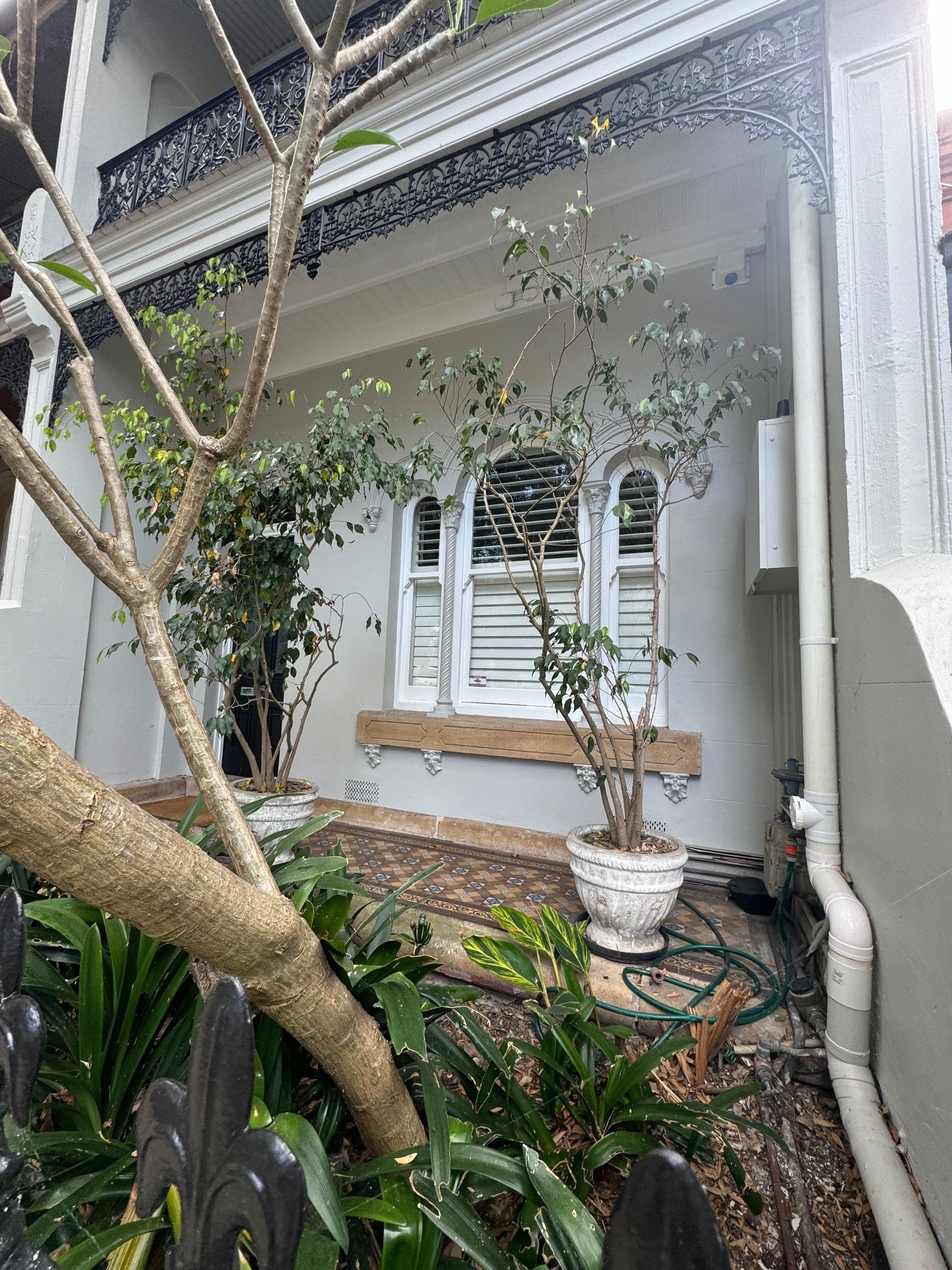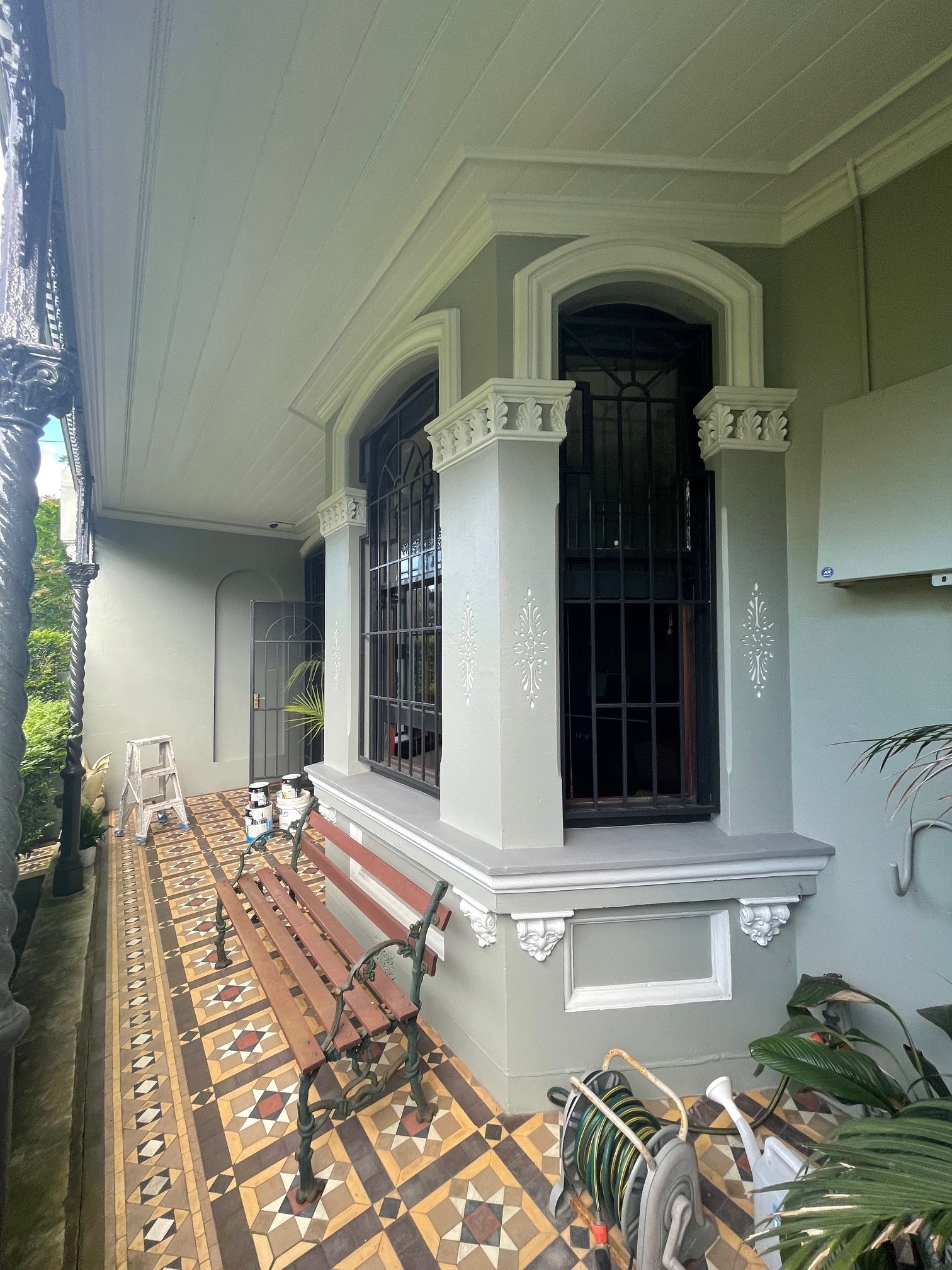 This project focused on repainting the front façade of a heritage terrace, including detailed architectural elements and decorative finishes to enhance street appeal while maintaining the original character.