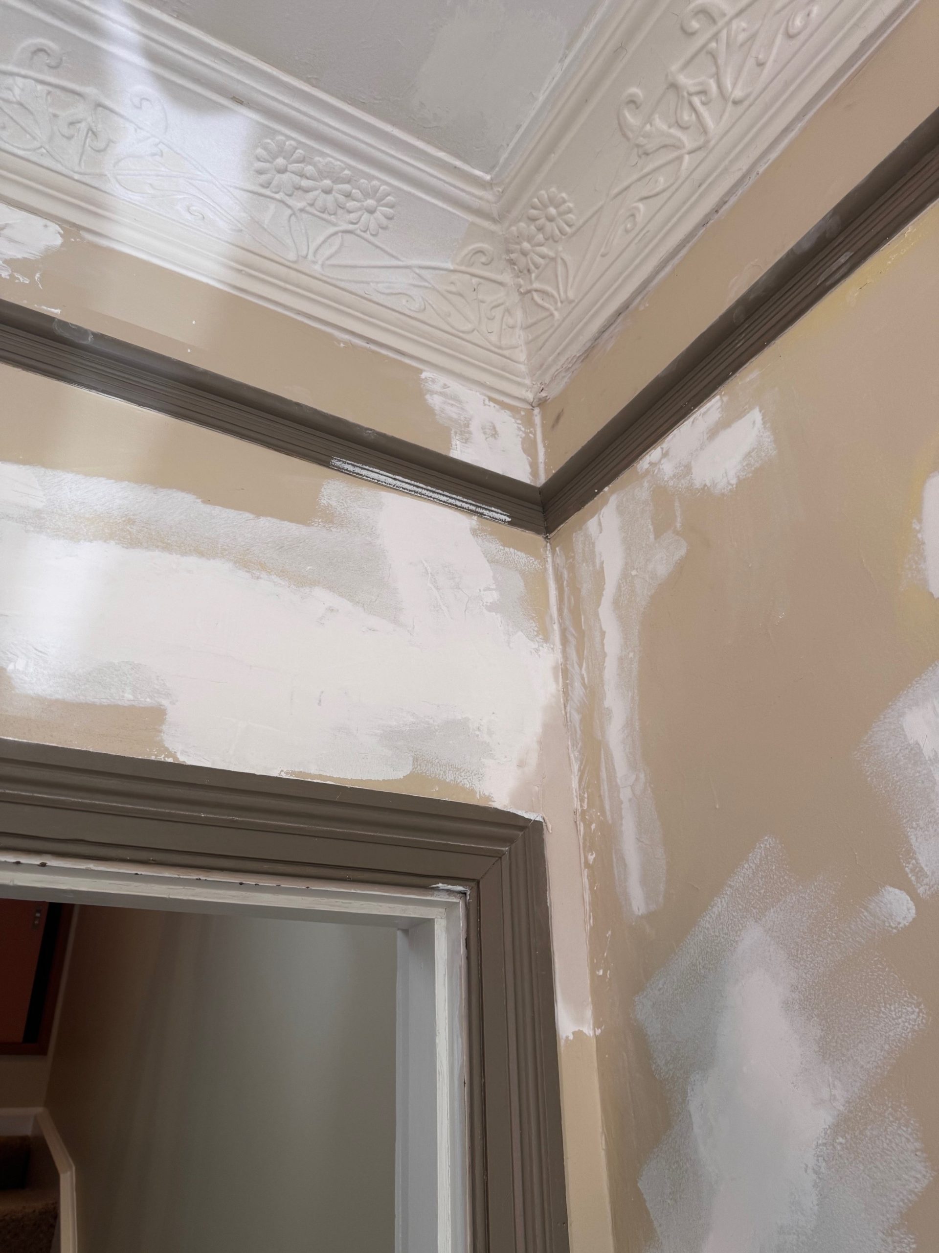 Full interior and exterior repaint in a traditional colour scheme, including crack repairs, water stain treatment and restoration of flaking paint.
